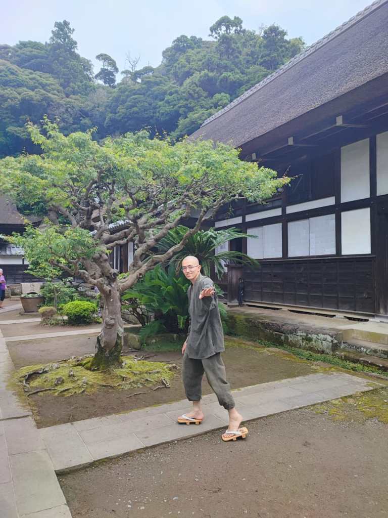 - “Ora, 14 agosto, sono seduta fuori, nel cortile del monastero in cui ho dormito stanotte. C’è una pace incredibile qui fuori. Ma a dir la verità, la pace, molto stranamente, la sento anche dentro di me. È questo luogo misterioso e magico… è il connubio tra campanellini al vento, bonsai, piatti vegani, monaci sereni, meditazione, mantra, piccoli Buddha ovunque, silenzio, lentezza, mancanza di problemi e preoccupazioni. La struttura in legno, le porte di carta di riso, gli sparuti alberelli che costellano il giardino e quelli possenti della foresta intorno, il giardino curato in ogni dettaglio, i simboli di pace disegnati coi sassolini del ghiaino, la colazione di piccoli assaggi vegani seduti su un cuscino, l’elegante tunica blu con la cintura a righe che abbiamo indossato…”