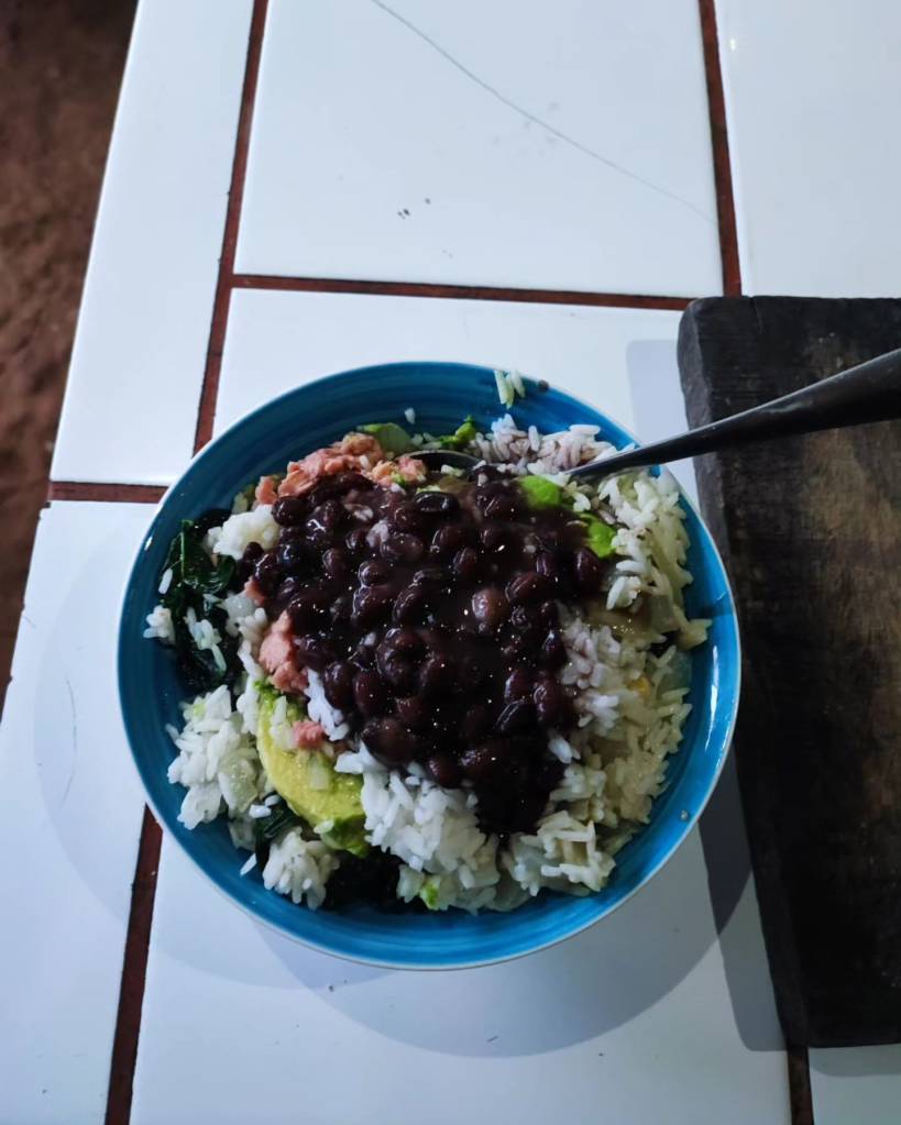 For us, the volunteers, accommodation (it would have been 14 dollars for one bed in the dormitory and 35 for the double bed in the cabins), rice and beans and the access to the trails (with breathtaking viewpoints, river and waterfalls) was given in exchange of some daily hours of guest reception work and general maintenance of the hostel.