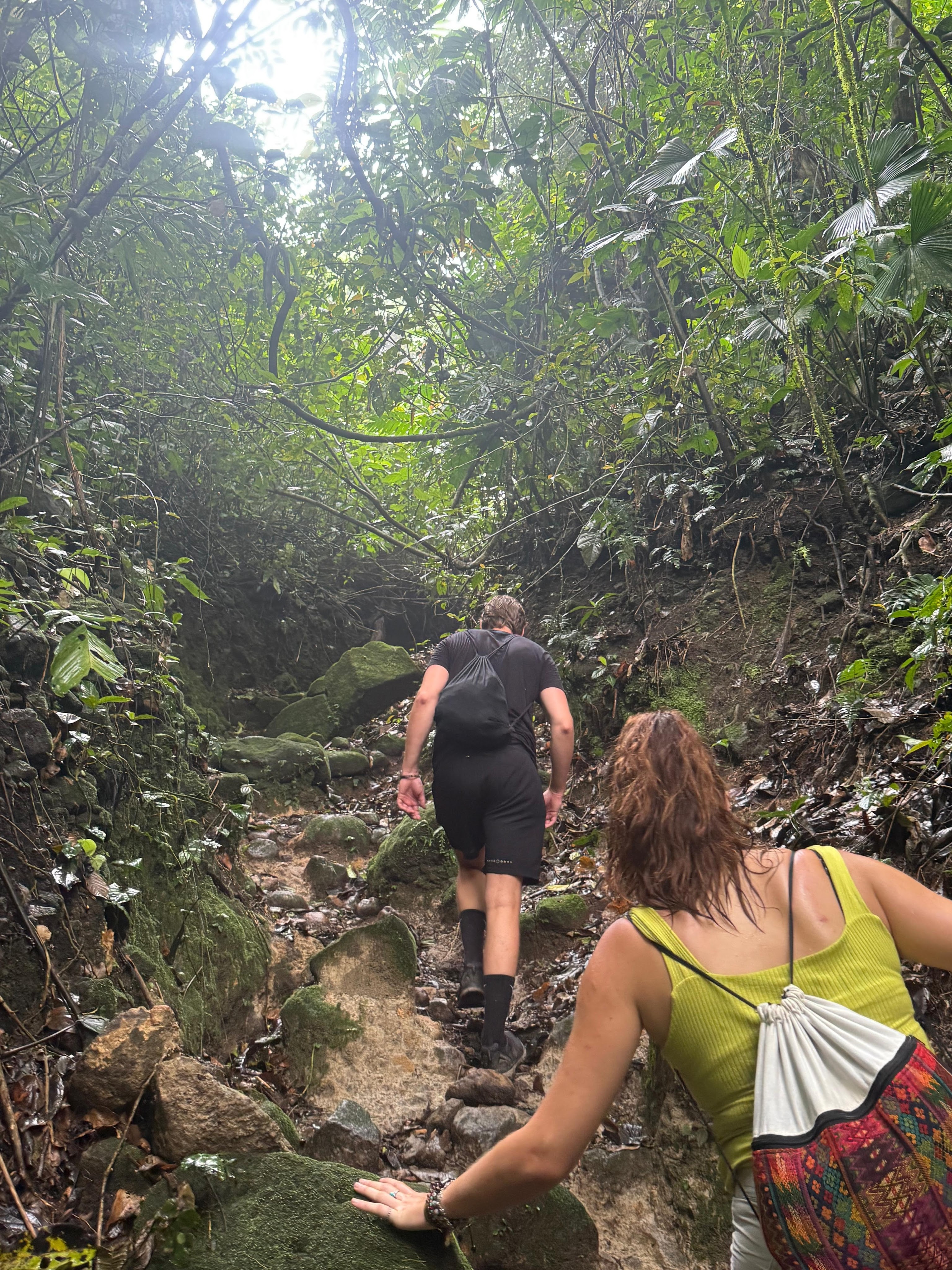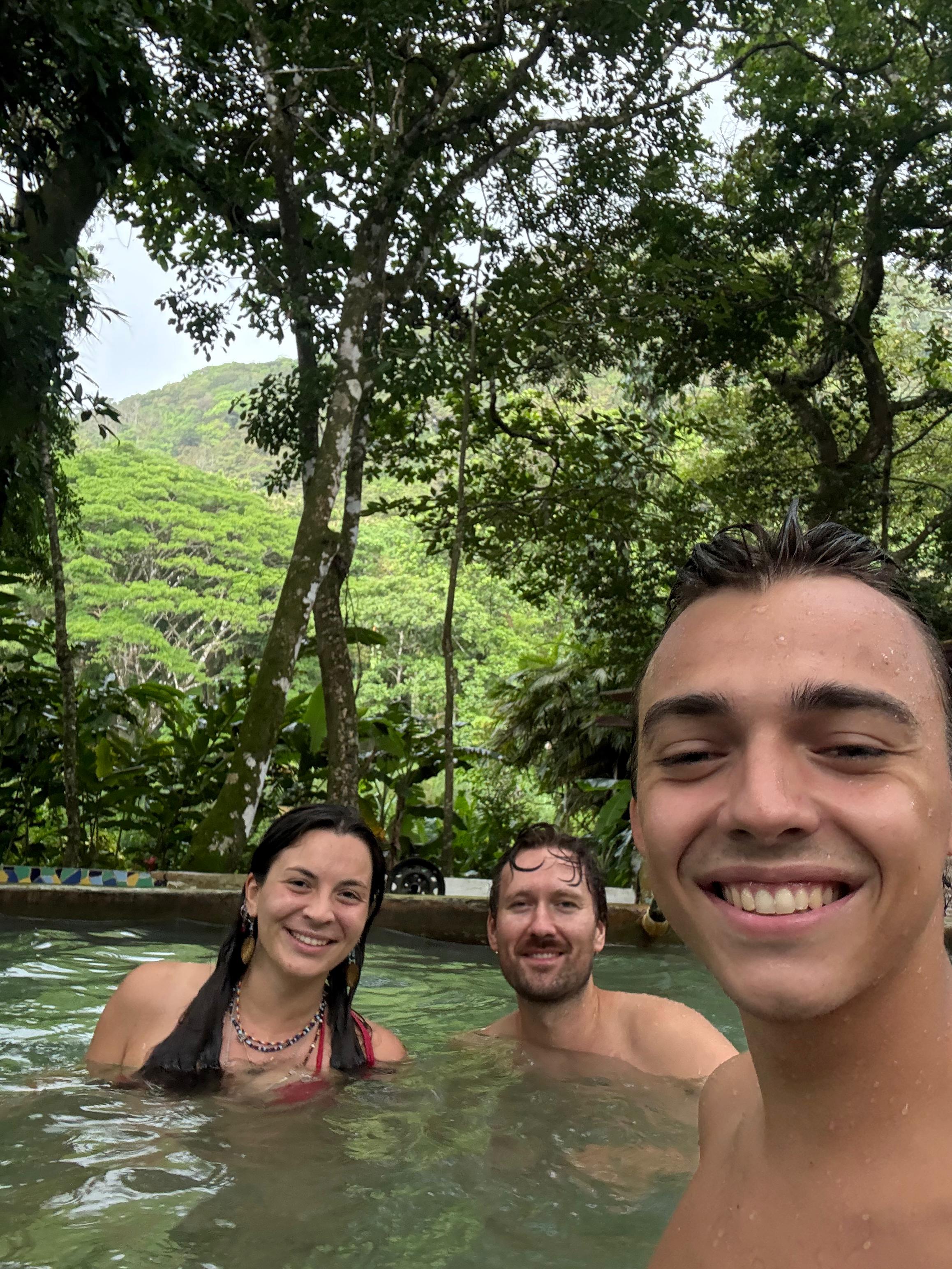 At the hostel where I worked, I met Jakob from Germany, Lina from Germany, Chris from Germany, Theo from France, Kamalya from Germany, Madison from the USA, Martin from Uruguay, Livia from Switzerland, Wannes from Belgium, Manon and Gabin from France, Dennis and Ellen from Belgium, Timur from Germany, and Ken from Japan. I also regularly visited Casa de Juan hostel, where I met Danil from Ukraine and Alina from Germany, and saw my friend Vika from France, whom I had met at Zebulo Hostel in Panama City. These friendships shaped and enriched my experiences, making my time in this little volcanic town memorable. With these friends, I went on hikes, watched movies, played card games, had lunches out, shared long conversations, practiced yoga, visited the local markets, went to the Pozos Termales to swim in fresh waterfalls, and had a lot of fun.